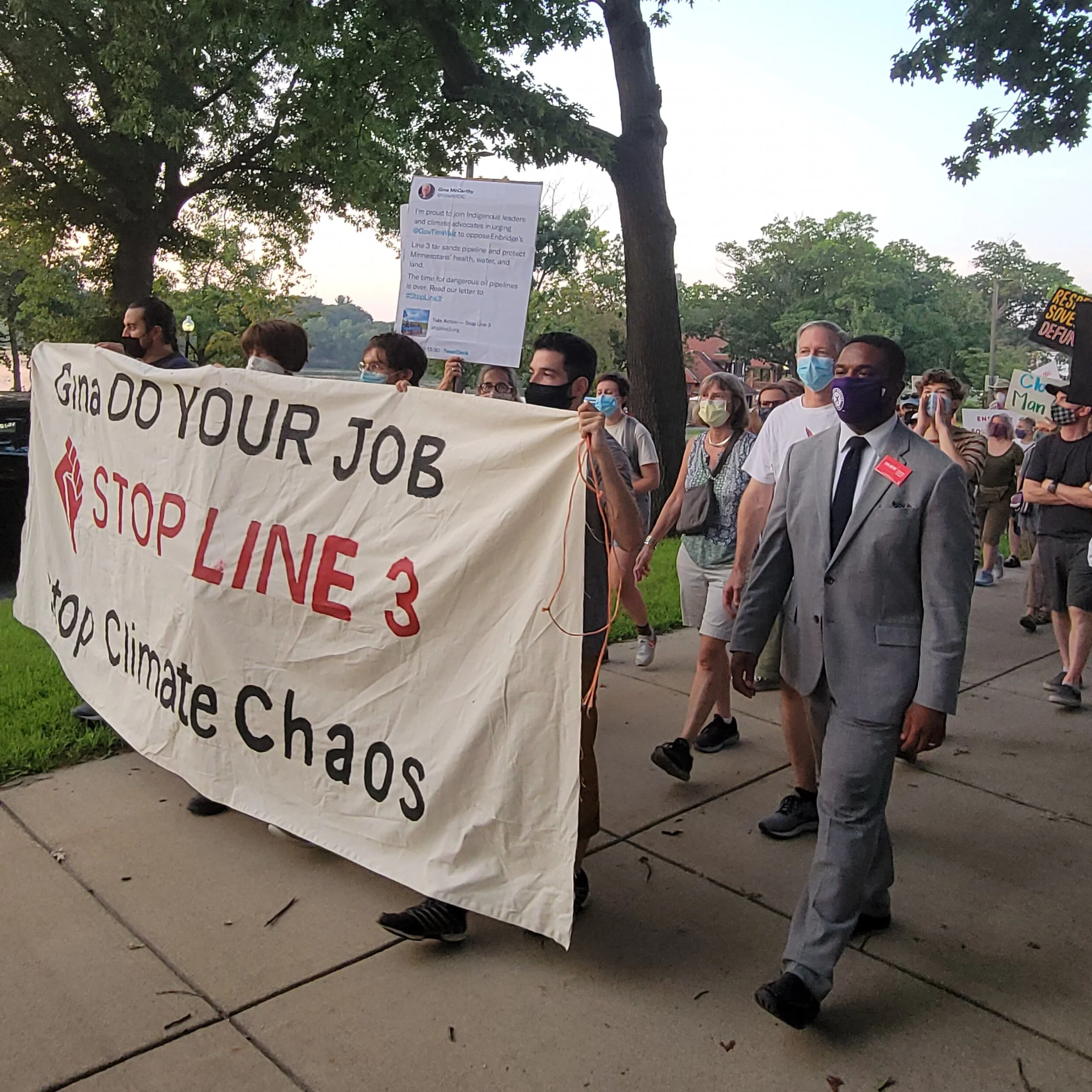 David marching with climate justice activists in Jamaica Plain to oppose the Line 3 pipeline.